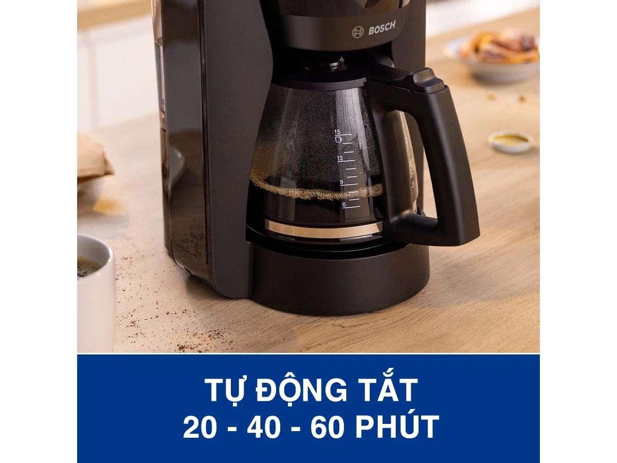 Máy pha cà phê Bosch TKA3M133 có tính năng giữ ấm cà phê trong thời gian từ 20 đến 60 phút, tùy theo nhu cầu của người dùng, giúp bạn thưởng thức cà phê nóng suốt thời gian dài. Sau khi hết thời gian giữ ấm, máy sẽ tự động ngắt điện, giúp tiết kiệm điện năng.