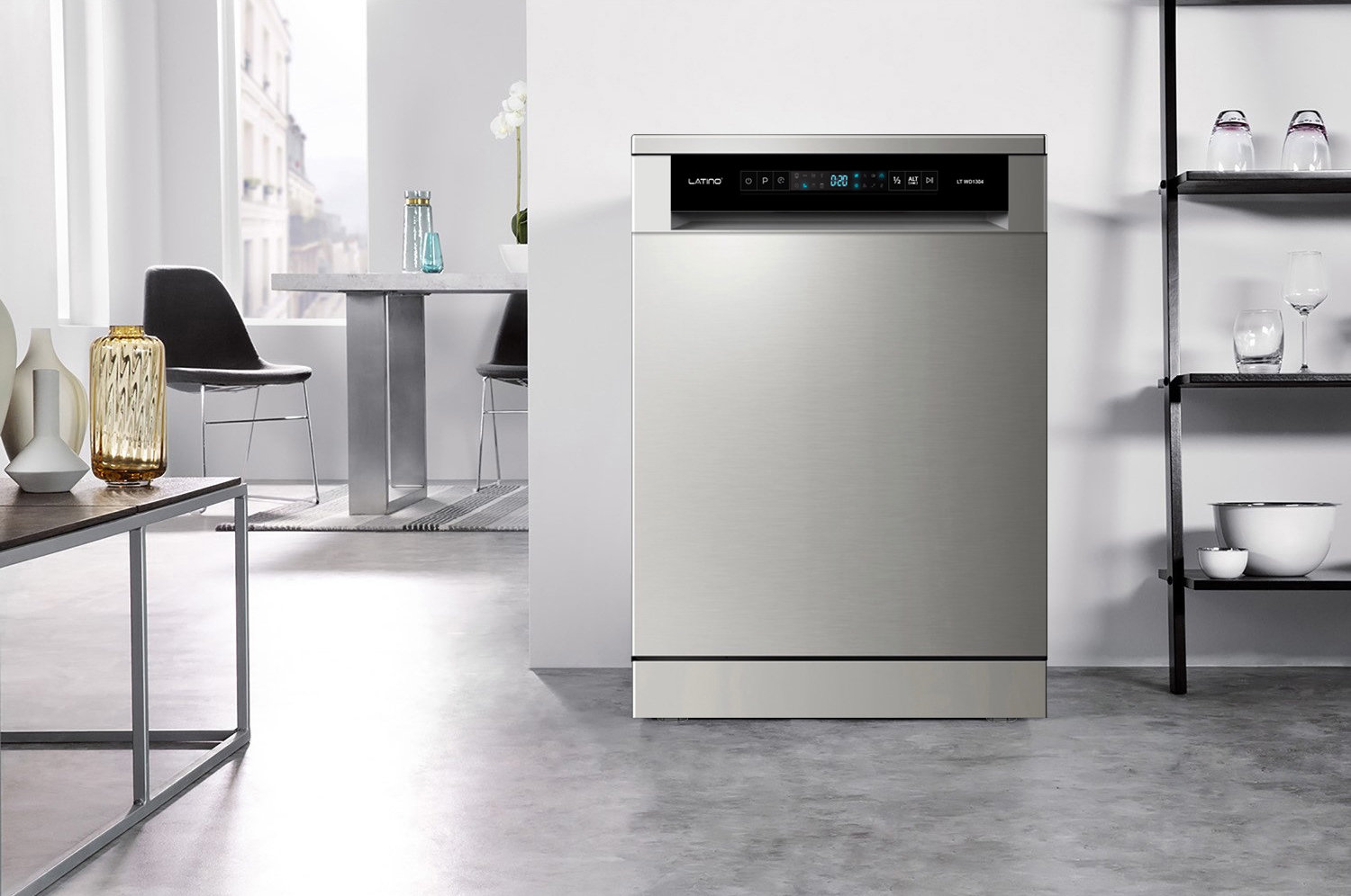 Tăng tính thẩm mỹ cho gian bếp gia đình: Thiết kế sang trọng, hiện đại máy rửa bát 13 bộ Latino LT WD1304 dễ dàng chinh phục được mọi không gian bếp. Màu xám bạc, tinh tế tới từng chi tiết, không khó để tạo điểm nhấn nổi bật.