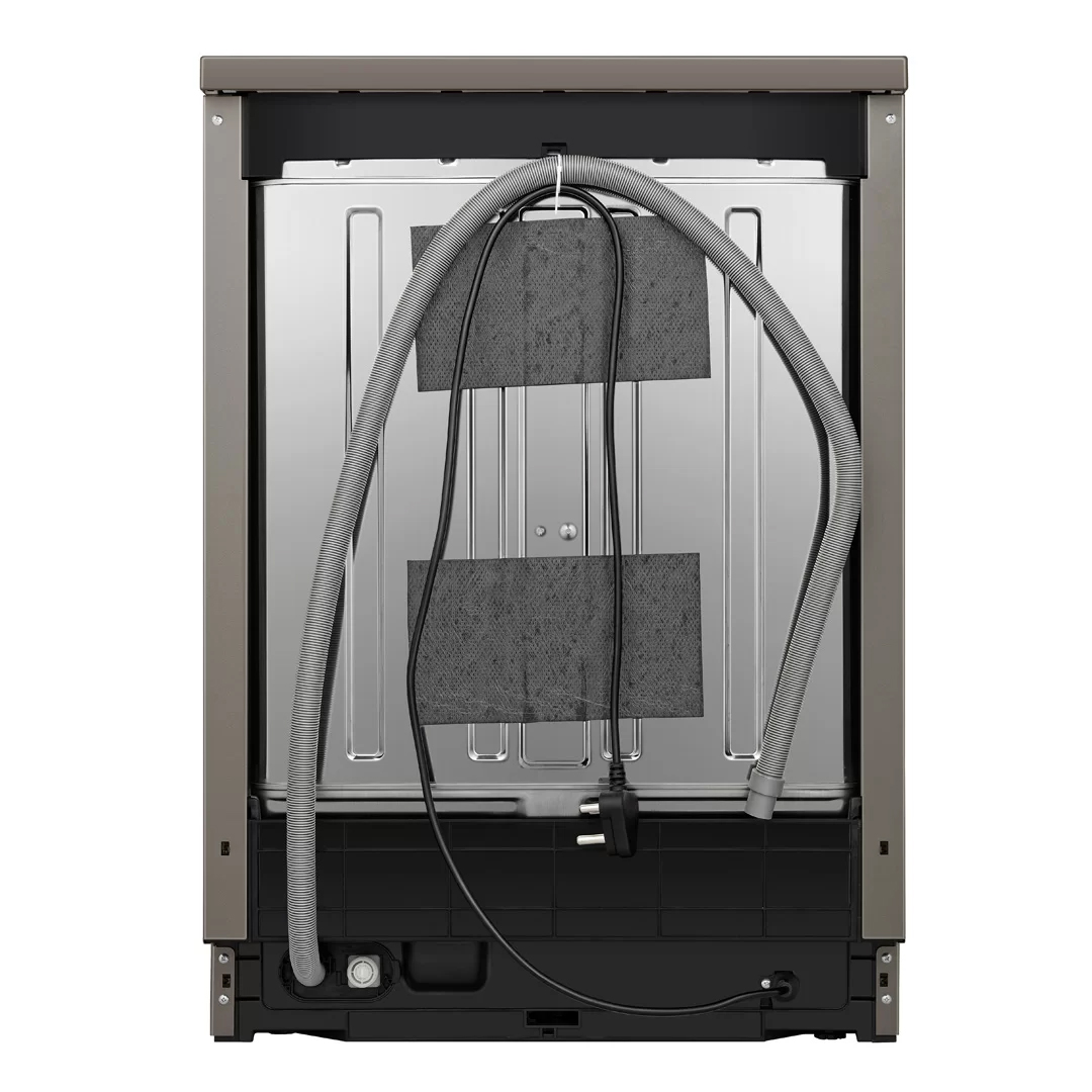 Mặt đằng sau sẽ toàn bộ khung màu đen, chứa ống thoát nước dài 158cm và ống cấp nước dài 154cm. Ngoài ra còn hệ thống dây điện dài 149cm. Tất cả những vật dụng liên quan đến dây điện, ống dẫn nước được sắp xếp ở mặt sau để tiết kiệm diện tích và đảm bảo tính thẩm mỹ cho máy rửa bát Latino LT WD1304G.
