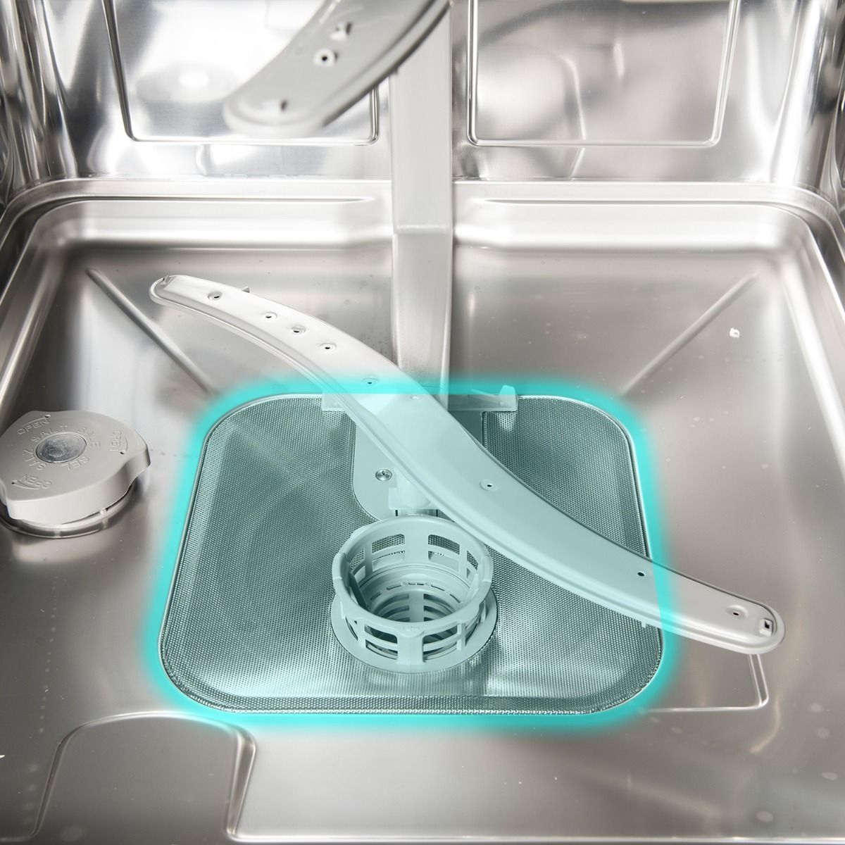 Ở phía trong bên của máy rửa bát Latino LT WD1304G có chứa ngăn chứa muối và ngăn chứa các chất rác trong quá trình rửa. Người dùng cần dùng loại muối chuyên dụng cho máy rửa bát. Mỗi lần đổ muối sẽ dùng được khoảng 1,5 tháng đến 2 tháng. Khi hết lượng muối cần thiết, máy sẽ báo hiệu ở trên bảng điều khiển.
