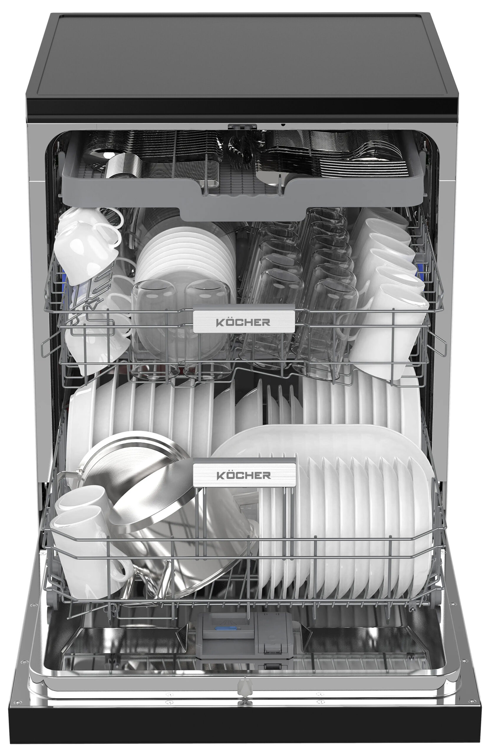 Máy rửa bát Kocher KDEU-X15B Pro trang bị 3 khay chứa cơ động.