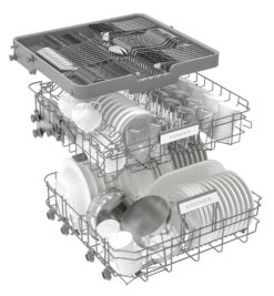Giàn rửa dưới cùng của máy có khoang chứa rộng hơn, cho phép rửa các loại nồi nấu, chảo, bát đĩa to…