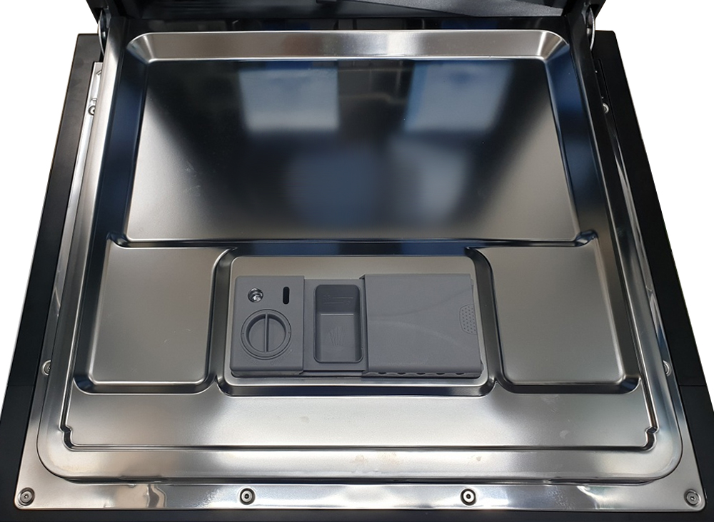 Bên cạnh đó, phần cánh cửa đậy cần biết về ngăn đựng chất làm bóng và ngăn đựng viên tẩy rửa. Chất làm bóng giúp cho bát đĩa được sáng và bóng hơn, trong khi đó viên tẩy rửa là chất liệu quan trọng để đánh sạch mọi vết bẩn.