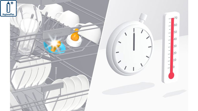 Chế độ HygienePlus giúp loại bỏ đến 99,9% vi khuẩn trên bát đĩa nhờ rửa ở nhiệt độ cao trong thời gian dài hơn. Phù hợp với gia đình có trẻ nhỏ hoặc người có sức đề kháng yếu, đảm bảo an toàn vệ sinh tối đa.