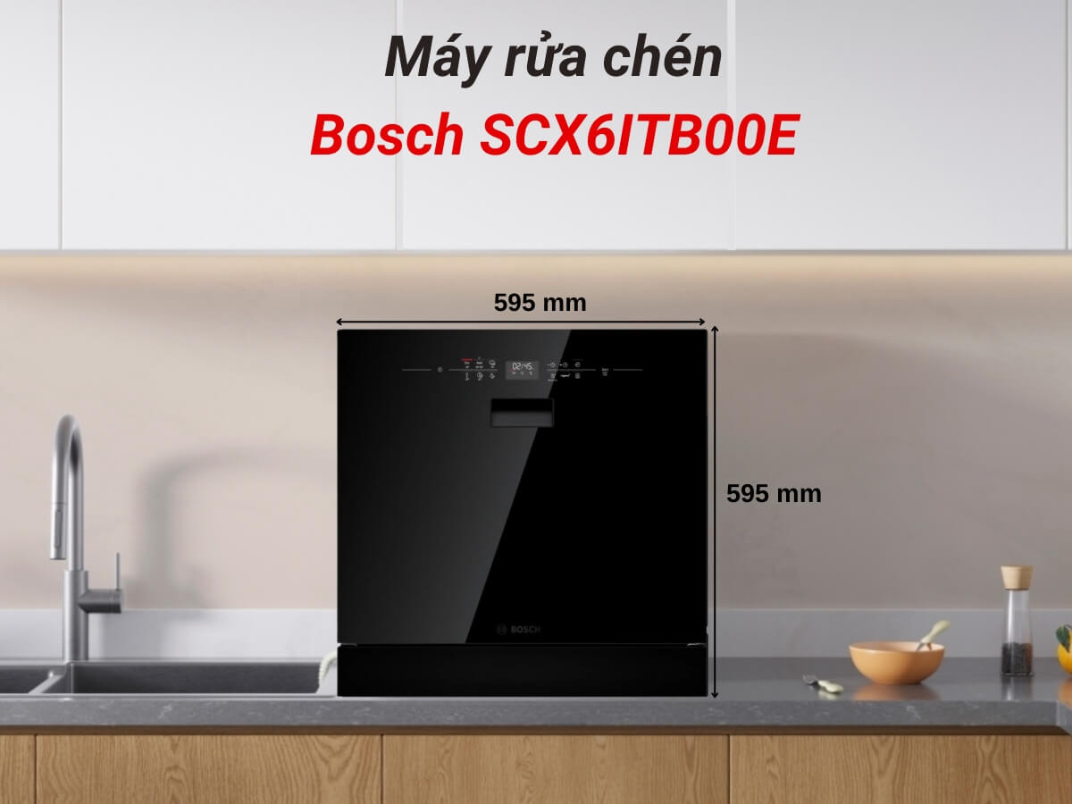 Bosch SCX6ITB00E được thiết kế dạng bán âm hiện đại, có thể lắp gọn gàng vào các hộc tủ bếp theo chuẩn châu Âu. Mặt kính màu đen kết hợp bảng điều khiển cảm ứng đặt trước tạo nên vẻ ngoài sang trọng, hài hòa với mọi không gian nội thất.