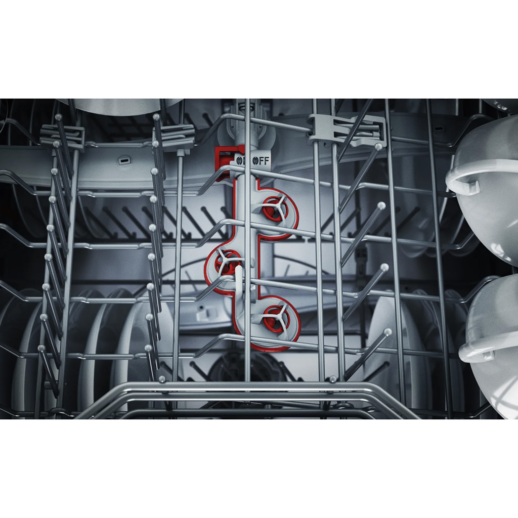Chương trình yên tĩnh nhất trên máy rửa bát Bosch SMI8YCS03E với chỉ 42dB. Điều này thực hiện ở chương trình Eco 50°C bằng cách giảm áp lực tay phun và động cơ không chổi than.