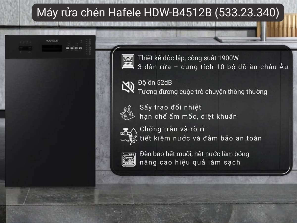 Máy rửa bát Hafele HDW-B4512B (533.23.340) thiết kế độc lập sang trọng