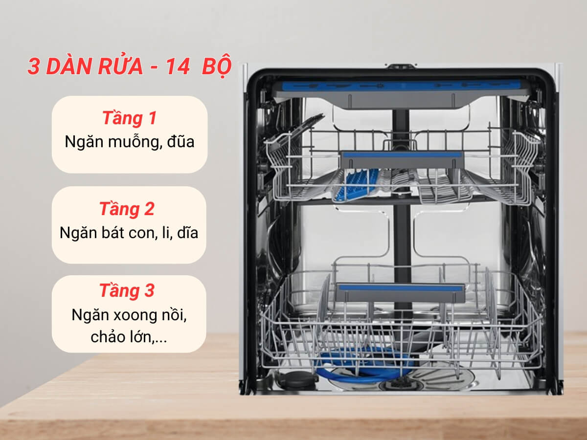 3 dàn rửa – dung tích 14 bộ đồ ăn châu Âu