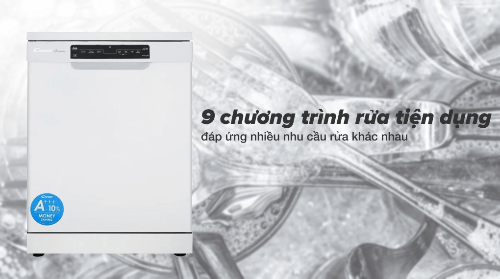 Máy rửa chén Candy còn được tích hợp 9 chương trình rửa tiện dụng với nhiều cấp độ nhiệt độ, giúp người dùng dễ dàng chọn chế độ phù hợp và tùy theo trình trạng bám bẩn của chén đĩa.