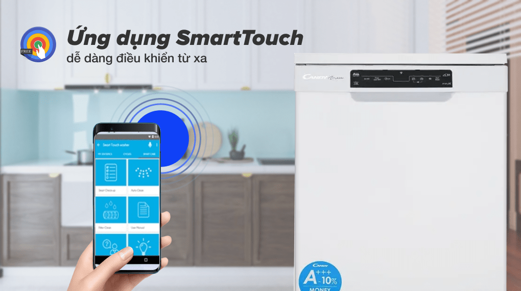 Là một chiếc máy rửa chén hiện đại, thiết bị còn được tích hợp tính năng điều khiển từ xa thông qua kết nối Wifi-Bluetooth. Chỉ với một chiếc điện thoại thông minh đã cài sẵn ứng dụng SmartTouch, bạn có thể dễ dàng kích hoạt máy rửa chén, vô cùng tiện lợi.