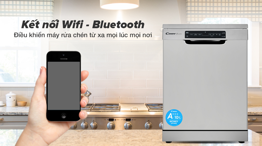 Máy rửa chén Candy có thể kết nối Wifi – Bluetooth với smartphone, cho phép bạn điều khiển máy rửa chén từ xa mọi lúc, mọi nơi thông qua ứng dụng Candy simply-Fi một cách tiện dụng để tùy chỉnh những chương trình rửa hoặc một số tính năng mở rộng khác
