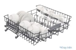 Máy rửa được 3 – 4 bữa ăn Việt (13 bộ châu Âu), phù hợp gia đình 4 – 6 người. Bên trong bố trí khay trên, khay dưới và giỏ đựng dao, muỗng, đũa riêng, giúp phân tách chén dĩa, ly tách và đồ dùng nhỏ rõ ràng.