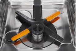 Công nghệ QuadWash trang bị 4 cánh tay phun đa hướng, tạo tia nước áp lực cao xoáy đều khắp khoang rửa, loại bỏ triệt để dầu mỡ và vết bẩn.