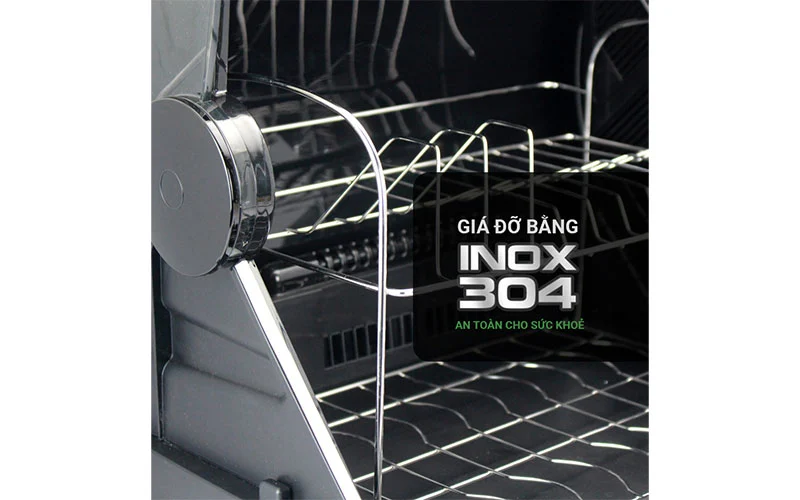 Máy sấy bát điện tử này được cấu tạo từ chất liệu cao cấp với toàn bộ vỏ máy được làm từ nhựa cao cấp, sáng bóng, dễ lau chùi vệ sinh tạo độ bền mới theo thời gian sử dụng, chất liệu có khả năng chịu lực và nhiệt cao giúp bảo vệ tốt hệ thống linh kiện bên trong máy hiệu quả, bên dưới còn được viền inox sáng bóng tạo vẻ sang trọng và đẹp mắt, nắp nhựa trong suốt dễ dàng quan sát được quá trình hoạt động bên trong, dễ dàng đóng mở từ mọi góc độ tiện dụng, chất liệu chắc chắn độ bền bỉ cao, giá đỡ bằng inox 304 không bị hoen gỉ, an toàn với sức khỏe, các bộ phận của máy dễ dàng tháo lắp để sử dụng và thuận tiện cho việc vệ sinh.