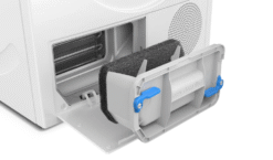 Ứng dụng công nghệ bơm nhiệt (Heatpump), máy giúp tiết kiệm điện năng lên đến 50% so với các dòng máy sấy dùng điện trở truyền thống. Nguyên lý hoạt động dựa trên việc tái sử dụng luồng khí nóng thông qua hệ thống khí gas và máy nén, mang lại hiệu quả sấy cao mà vẫn thân thiện với môi trường và chi phí vận hành được tối ưu. Đồng thời, thiết kế không cần ống thoát khí giúp việc lắp đặt linh hoạt hơn, đặc biệt phù hợp với không gian kín như chung cư hoặc căn hộ nhỏ.