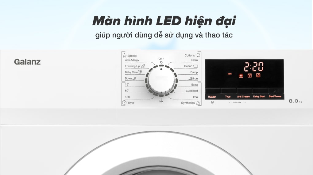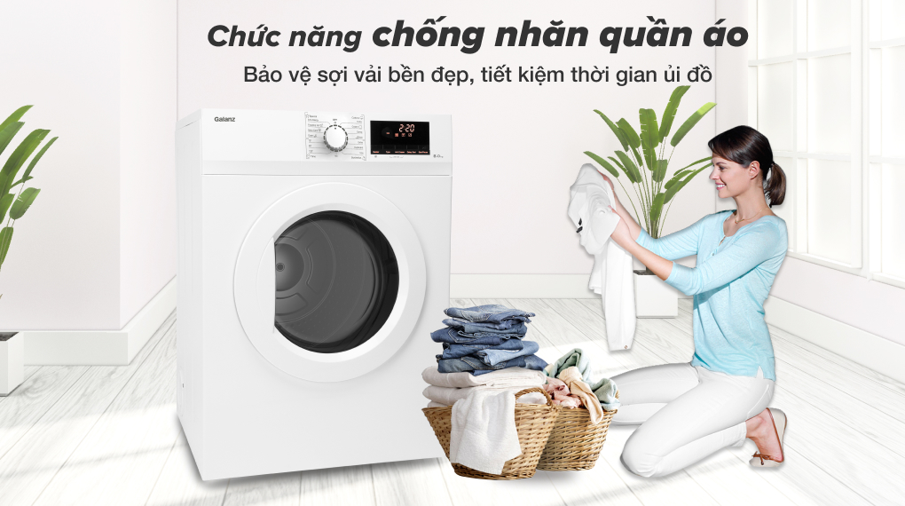 Nhờ có chức năng chống nhăn quần áo được trang bị trên máy sấy Galanz, lồng giặt sẽ được đảo chiều nhiều lần để tách rời áo quần và hạn chế xoắn rối, giúp chúng được sấy khô nhanh chóng mà vẫn hạn chế các nếp nhăn trên sợi vải, đồng thời giúp bạn tiết kiệm đáng kể thời gian là ủi quần áo.