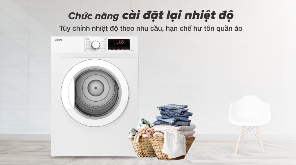 Với chức năng cài đặt lại nhiệt độ được trang bị trên máy sấy, bạn có thể điều chỉnh nhiệt độ tùy vào nhu cầu sử dụng, tùy vào chất liệu từng loại vải, giúp hạn chế hư tổn quần áo dưới tác động nhiệt, bảo vệ quần áo bền đẹp như mới.
