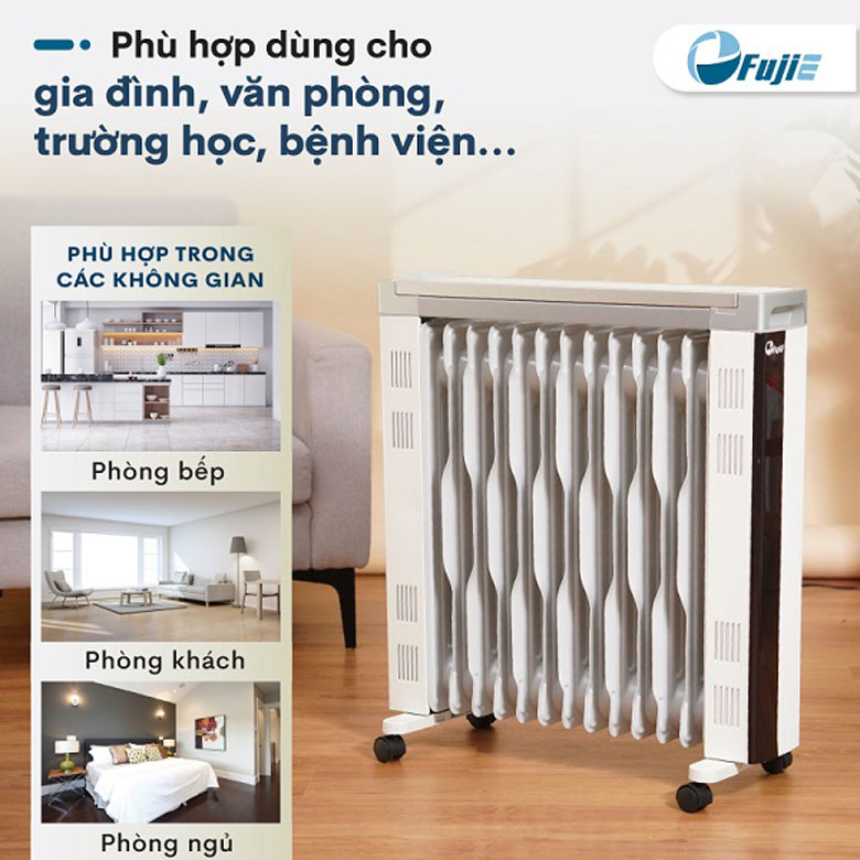 Máy sưởi dầu OFR7913 thích hợp để sử dụng cho mọi không gian dù là khép kín (trong gia đình, trường học, văn phòng, bệnh viện,…).