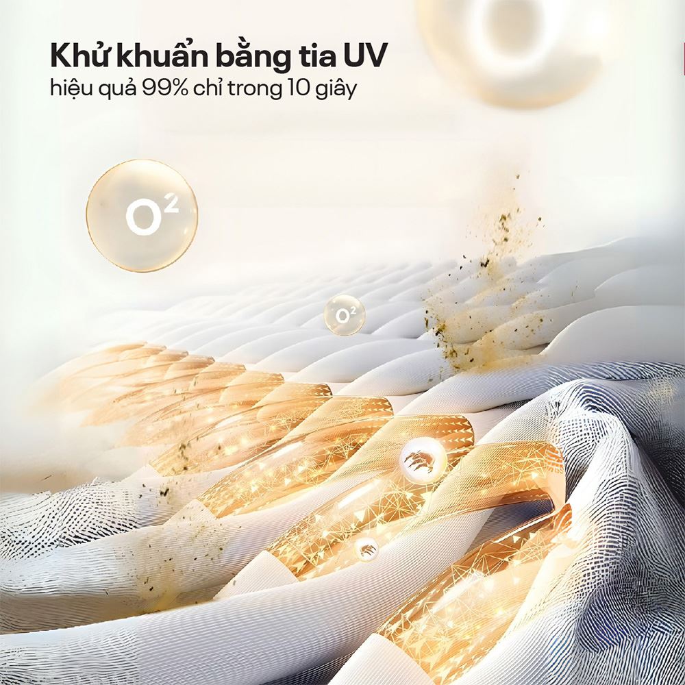 Máy còn được trang bị công nghệ khử khuẩn UV tiên tiến, có khả năng loại bỏ đến 99% vi khuẩn và nấm mốc chỉ trong 10 giây. Tia UV hoạt động ổn định, diệt khuẩn hiệu quả mà không làm ảnh hưởng đến chất lượng không khí hay vật liệu xung quanh. Nhờ đó, mọi hơi thở trong không gian sống đều trở nên trong lành, sạch khuẩn và an toàn cho sức khỏe của cả gia đình, đặc biệt là trẻ nhỏ và người có làn da nhạy cảm.