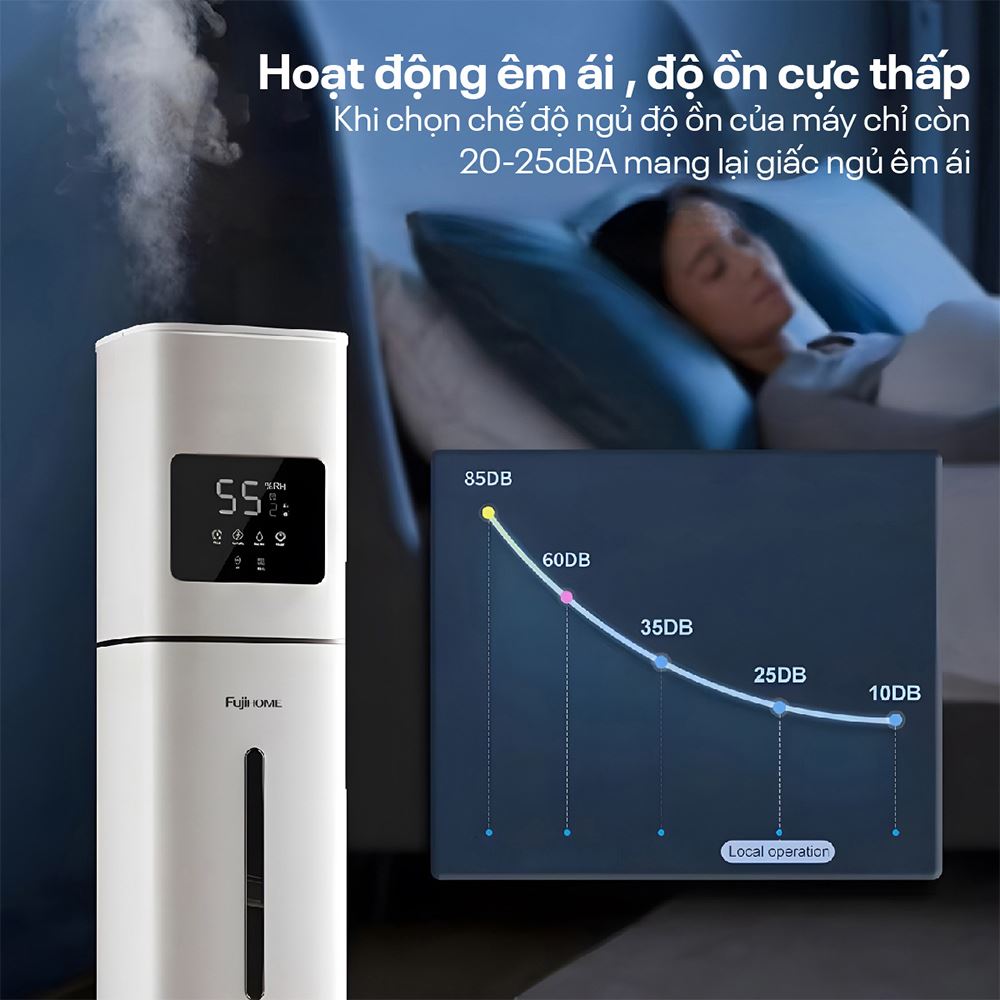 Đặc biệt, khi kích hoạt chế độ ngủ, máy vận hành êm ái với độ ồn chỉ khoảng 20 – 25 dB, tương đương tiếng lá rơi nhẹ. Sự yên tĩnh gần như tuyệt đối này giúp bạn ngủ sâu, thư giãn trọn vẹn. Dù hoạt động suốt đêm, máy vẫn đảm bảo tiết kiệm năng lượng và duy trì bầu không khí dễ chịu, mang đến giấc ngủ chất lượng trong môi trường an toàn.
