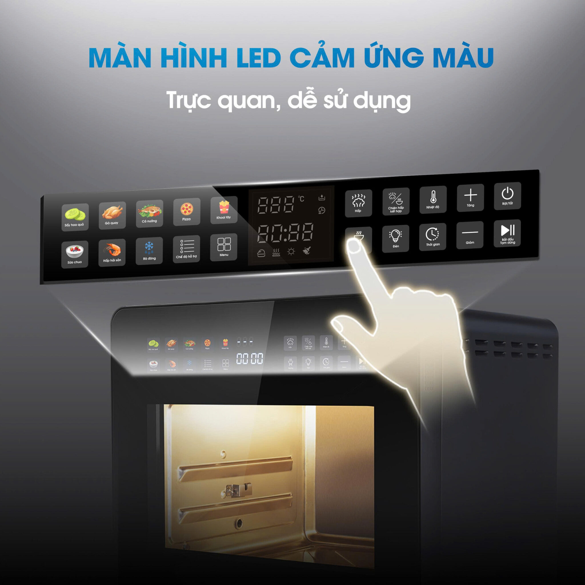 Nhờ cảm ứng nhạy và thao tác mượt, người dùng có thể điều chỉnh và kiểm soát quá trình nấu một cách chính xác, hạn chế thao tác rườm rà hoặc nhầm lẫn trong quá trình sử dụng. Thiết kế màn hình LED cảm ứng màu giúp việc điều khiển trở nên thuận tiện, dễ tiếp cận, phù hợp cho cả người lớn tuổi và gia đình nhiều thành viên trong sinh hoạt hằng ngày.