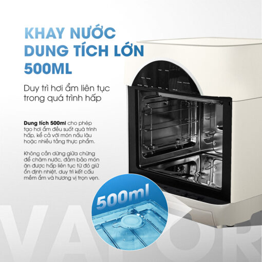 Khay nước dung tích lớn 500ml và Trải nghiệm nấu nướng đa dạng