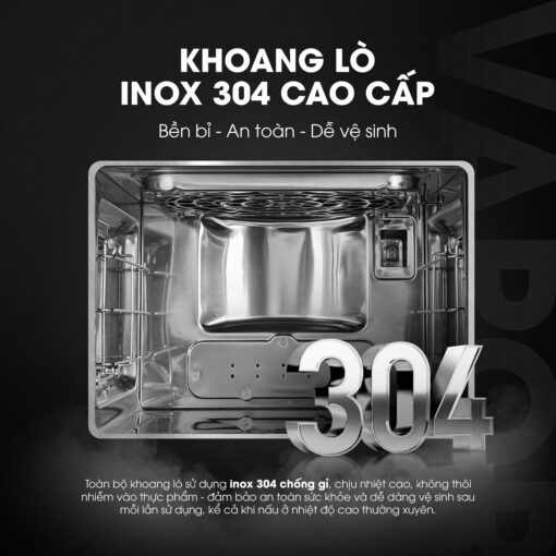 Cấu trúc 2 lớp cách nhiệt và Khoang lò Inox 304 cao cấp