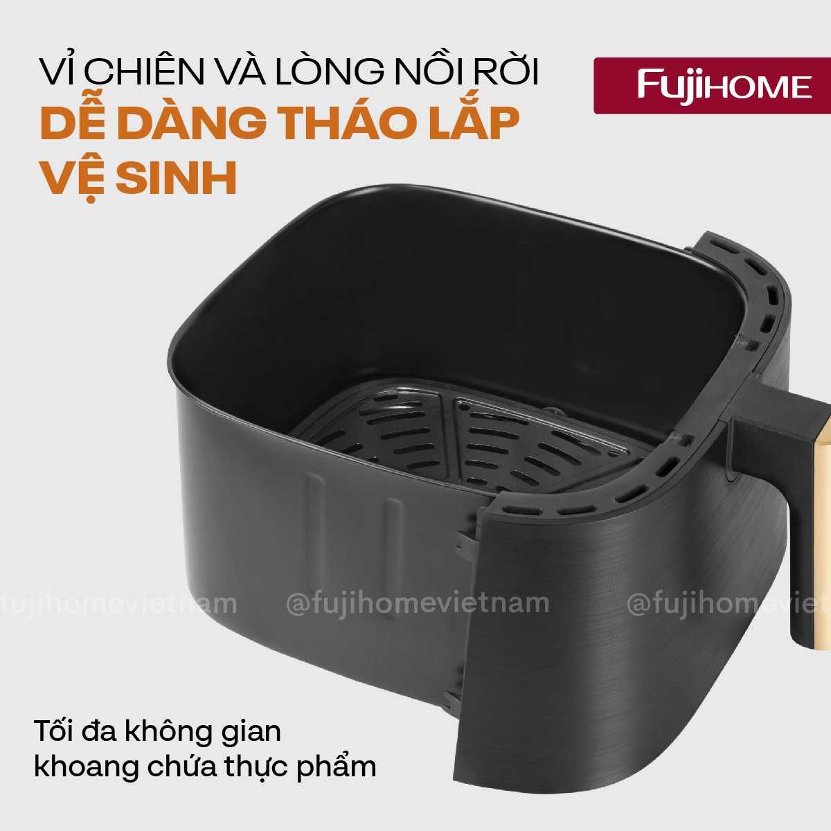 – Món chiên, rán tuy ngon nhưng phải sử dụng lượng dầu khá lớn ảnh hưởng không tốt đến sức khỏe con người ,y học đã khuyến cáo . Với công nghệ Rapid Air ứng dụng trong Nồi chiên không dầu Fujihome A8DG1, việc chiên rán không những nhanh gọn hơn, tiết kiệm thời gian hơn mà còn tốt hơn cho sức khỏe. Công nghệ Rapid Air giúp nhiệt truyền với cường độ lớn phủ khắp bề mặt thực phẩm và xuyên thấu qua bên trong giúp thực phẩm luôn chín đều và giòn tan. Với công nghệ này, nhiệt được tập trung tối ưu hơn không bị thoát ra ngoài như nồi đối lưu truyền thống tạo lớp vỏ giòn vàng cho món ăn đẹp mắt bên ngoài, mềm bên trong.