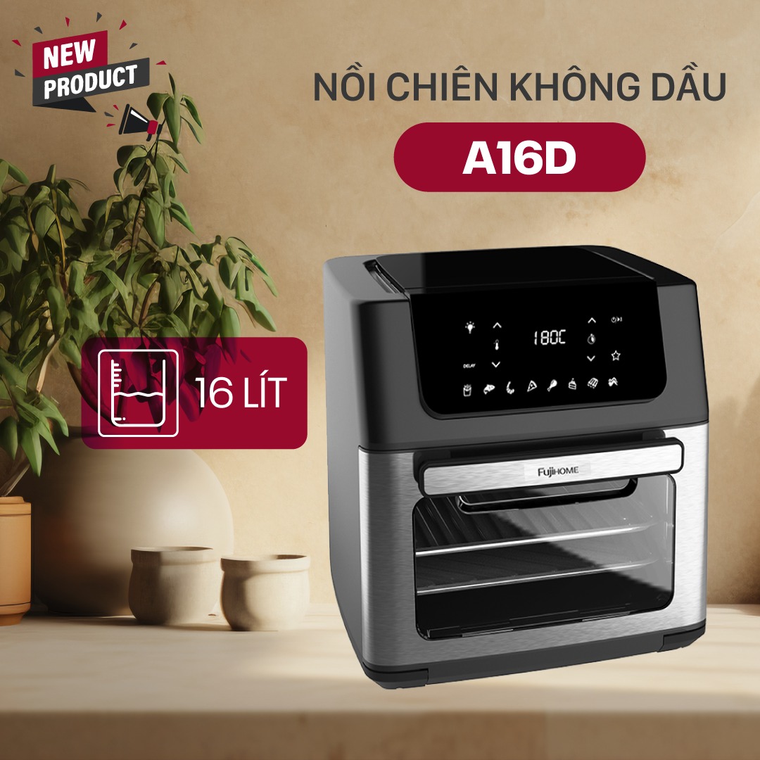 Nồi chiên không dầu Fujihome A16D – 16L thế hệ mới: Đỉnh cao đa năng, an toàn chuẩn châu Âu thế hệ mới – sự kết hợp hoàn hảo giữa công nghệ đỉnh cao, thiết kế tinh tế và chất lượng vượt trội, mang đến trải nghiệm nấu nướng hoàn hảo, an toàn và tiện lợi!