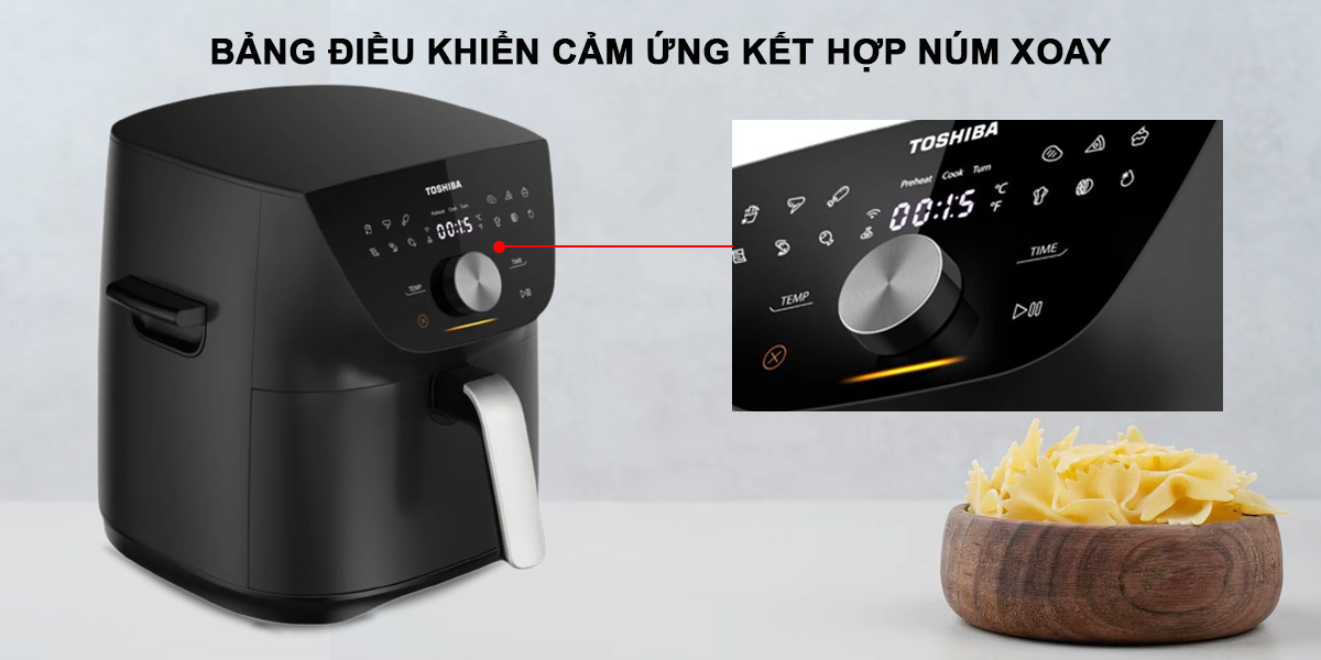 Bảng điều khiển cảm ứng nhạy bén kết hợp núm xoay giúp người dùng điều chỉnh chức năng và nhiệt độ dễ dàng.