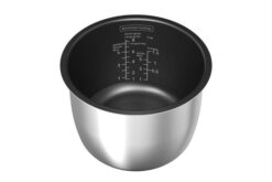 Lòng nồi được làm từ nhôm phủ lớp chống dính Binchotan dày 1.5 mm, có khả năng dẫn và giữ nhiệt ổn định. Lớp phủ Binchotan không chỉ giúp cơm không bám dính mà còn tăng độ bền, dễ lau chùi và đảm bảo an toàn cho sức khỏe.