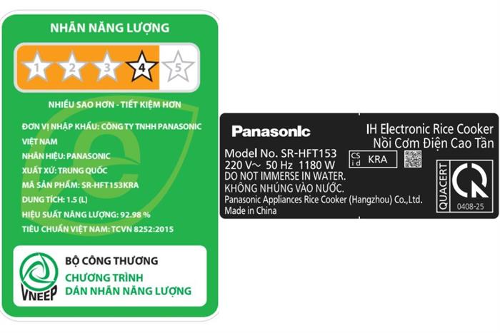 Nồi cơm cao tần Panasonic 1.5 lít SR-HFT153KRA với công nghệ cao tần IH kết hợp nấu 3D, thiết kế nhỏ gọn, bền đẹp và nhiều chế độ nấu tiện ích, là lựa chọn lý tưởng cho gia đình nhỏ muốn thưởng thức cơm dẻo ngon, chín đều và giàu dinh dưỡng mỗi ngày.