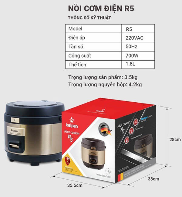 Trên thị trường hiện nay có rất nhiều kiểu dáng cũng như thương hiệu về dòng thiết bị này như: nồi cơm nắp gài, nắp rời, điện tử, cao tần,… Trong số đó dòng nồi cơm điện nắp gài luôn được người tiêu dùng lựa chọn sử dụng nhiều nhất, vì thiết kế dễ sử dụng giá cả phù hợp với hầu hết mọi kinh tế gia đình. Hôm nay, chúng tôi xin giới thiệu đến bạn một sản phẩm đến từ thương hiệu nổi tiếng Kalpen, đó là Nồi cơm điện Kalpen R5 đang rất được ưa chuộng trên thị trường hiện nay.