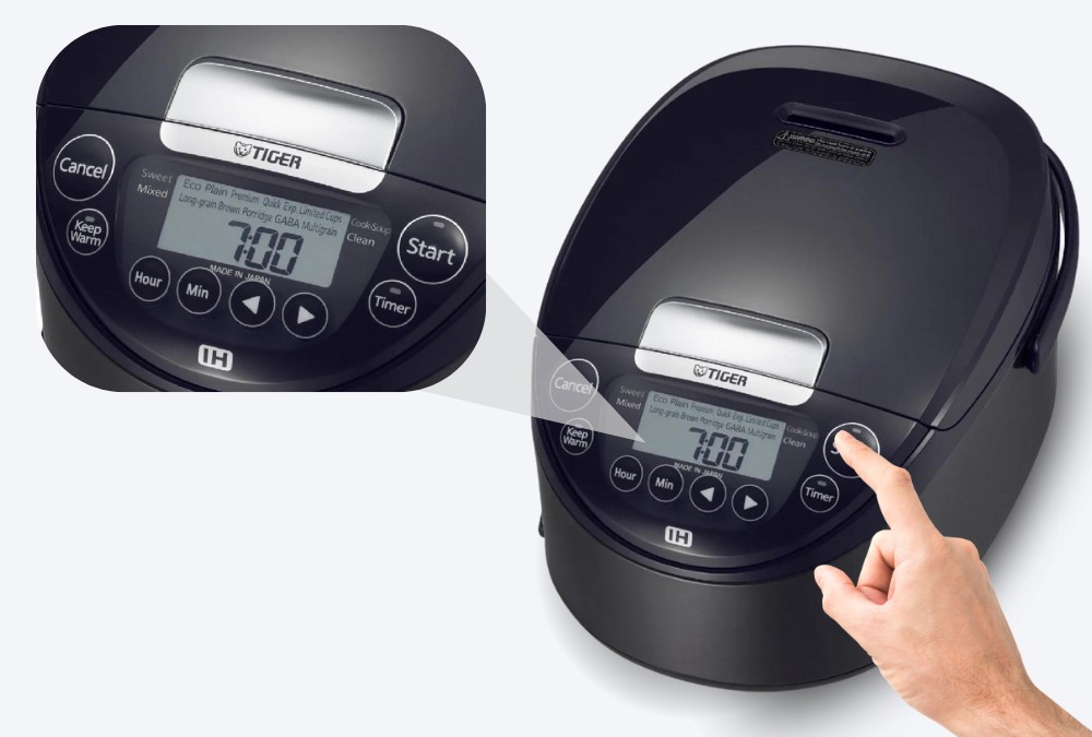Nồi cơm điện cao tần Tiger JPW-H10V 1.0 Lít – Nhật Bản trang bị bảng điều khiển trực quan với màn hình LCD và các nút nhấn điện tử dễ sử dụng. Bạn có thể lựa chọn chương trình nấu, cài đặt hẹn giờ,… một cách đơn giản và thuận tiện.