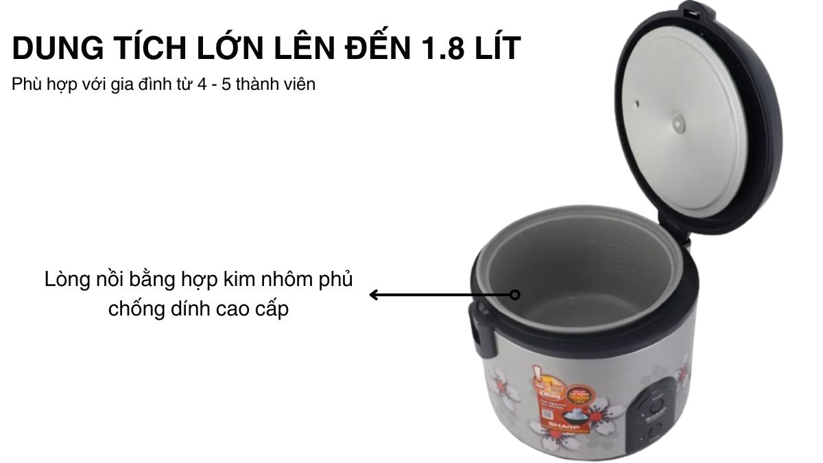 Dung tích 1.8 lít – Lòng nồi bằng hợp kim nhôm phủ chống dính