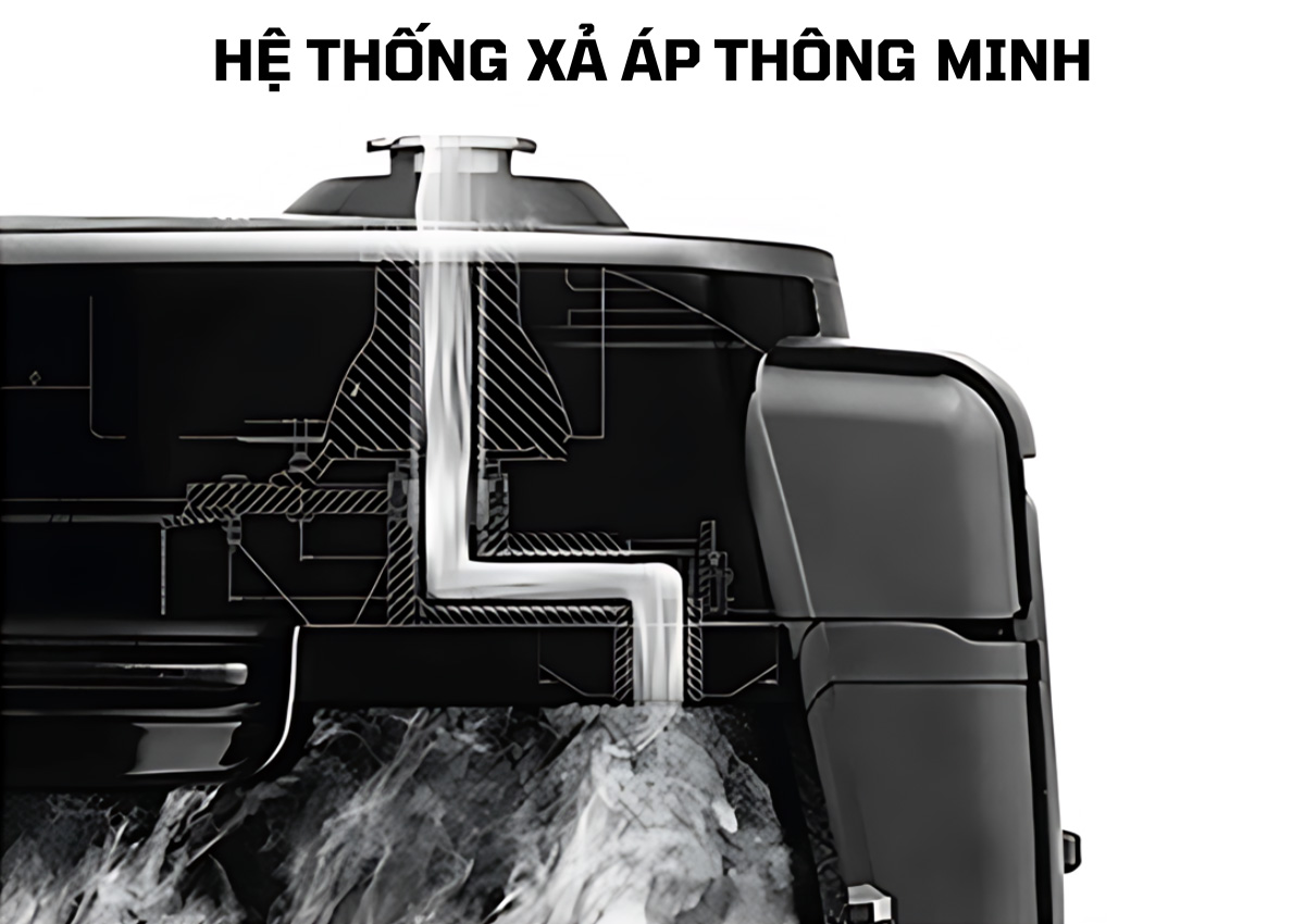 Hệ thống xả áp suất thông minh: Công nghệ xả hơi nước liên tục xử lý hoàn toàn vi khuẩn và mùi hôi trong quá trình nấu, đồng thời loại bỏ triệt để hơi nước còn đọng lại.