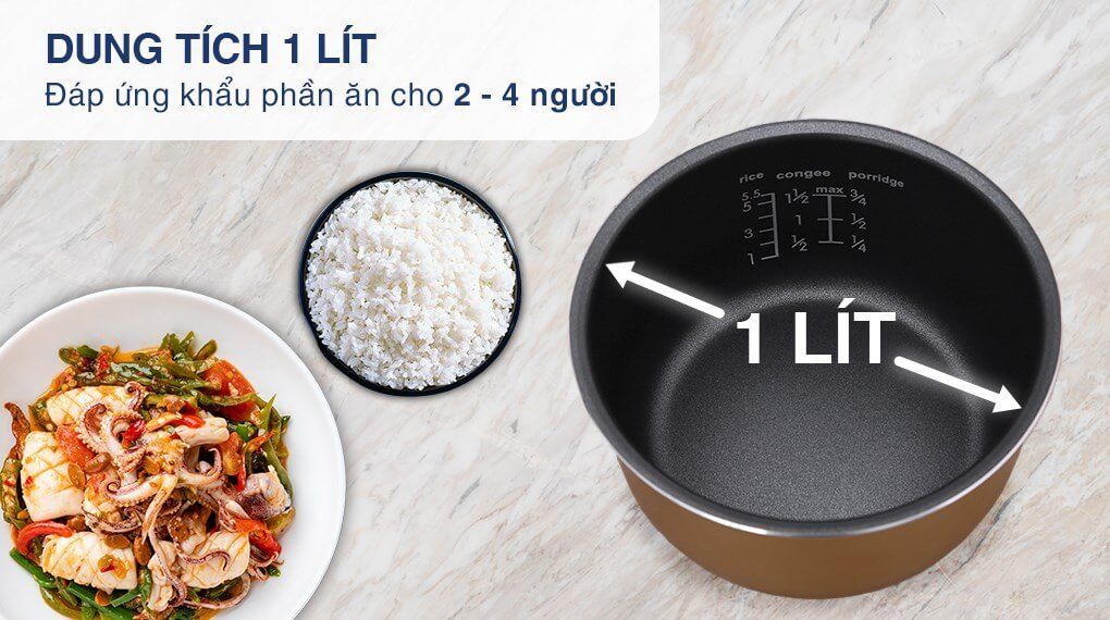 Dung tích 1 lít phù hợp cho gia đình nhỏ từ 2 đến 4 người, cùng với nhiều chế độ nấu đa dạng,