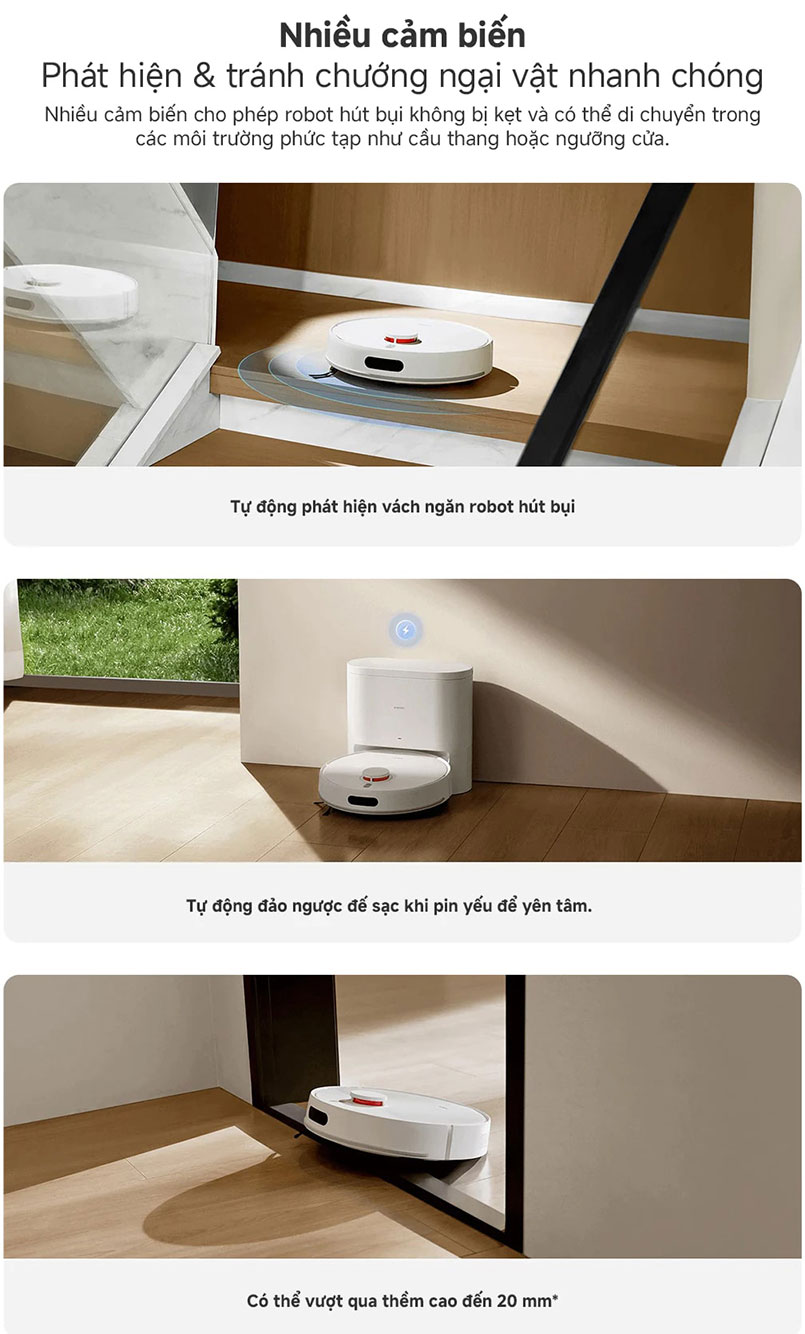 Ngoài ra, Xiaomi Vacuum H40 có tính năng tự động quay về trạm sạc khi pin yếu, giúp bạn an tâm khi sử dụng mà không phải lo lắng về việc hết pin giữa chừng. Robot sẽ tự động quay lại trạm sạc để sạc đầy pin và tiếp tục làm sạch khi cần thiết.
