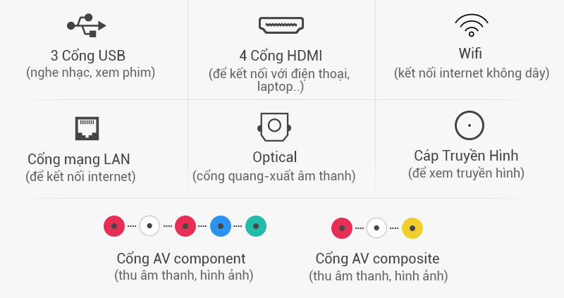 Kết nối tivi với dàn máy, đầu DVD, USB,…