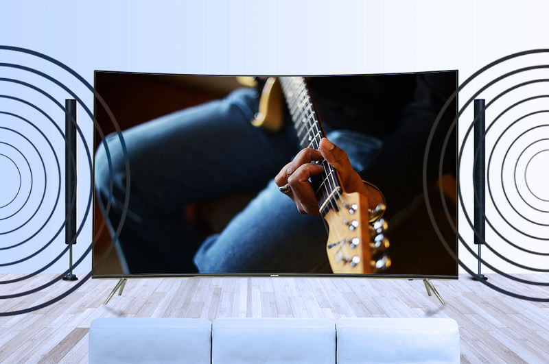 Bên cạnh hệ thống loa có tổng công suất 40 W, tivi Samsung này còn mang đến cho người dùng trải nghiệm âm thanh vòm trung thực, bùng nổ với công nghệ Dolby Digital có khả năng phát ra âm thanh kỹ thuật số theo 6 kênh riêng biệt.