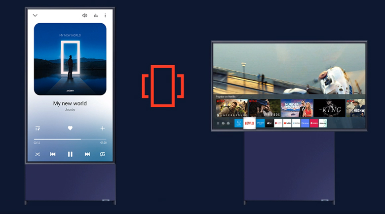 Tivi Samsung QLED phá vỡ định kiến về tivi hiện đại khi sở hữu thiết kế linh động bất ngờ, màn hình xoay ngang – dọc tiện dụng. Với chế độ màn hình ngang bạn thưởng thức các bộ phim điện ảnh, chương trình truyền hình hoàn hảo, chế độ màn hình dọc dễ dàng tối ưu những nội dung trên điện thoại cho mọi người trải nghiệm xem trọn vẹn hơn.