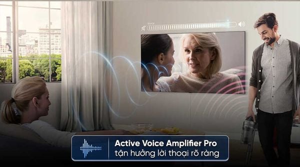 Công nghệ Q-Symphony cho phép loa của tivi và loa thanh Samsung hoạt động đồng thời, tạo nên hiệu ứng âm thanh cộng hưởng mạnh mẽ, bao phủ khắp căn phòng.