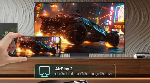 Bên cạnh đó, tivi còn hỗ trợ AirPlay 2, Bluetooth, Wi-Fi và nhiều cổng kết nối giúp dễ dàng chia sẻ nội dung từ điện thoại, laptop hoặc thiết bị ngoại vi khác.
