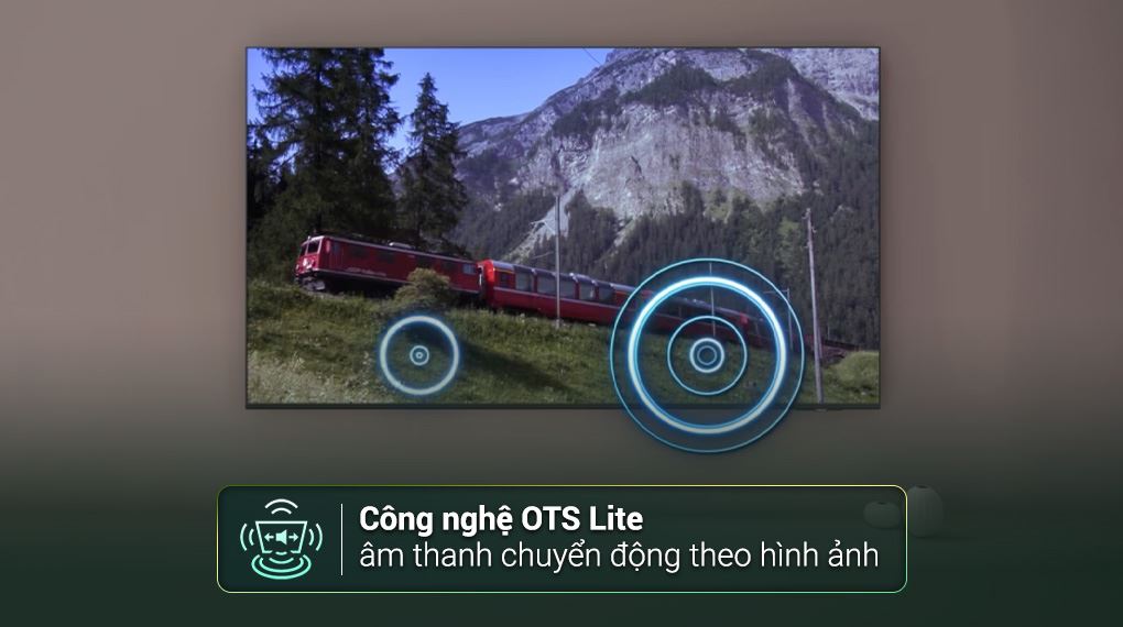 Hệ thống loa công suất 20W cùng công nghệ OTS Lite mang đến âm thanh lan tỏa và chuyển động theo hình ảnh, phù hợp cho nhu cầu xem phim và giải trí trong không gian phòng khách.