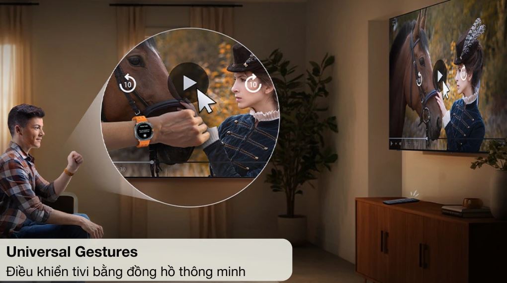 Universal Gestures cho phép điều khiển tivi bằng Galaxy Watch tương thích thông qua các thao tác cử chỉ đơn giản, từ đó hạn chế phụ thuộc remote và thuận tiện hơn trong quá trình sử dụng hằng ngày.