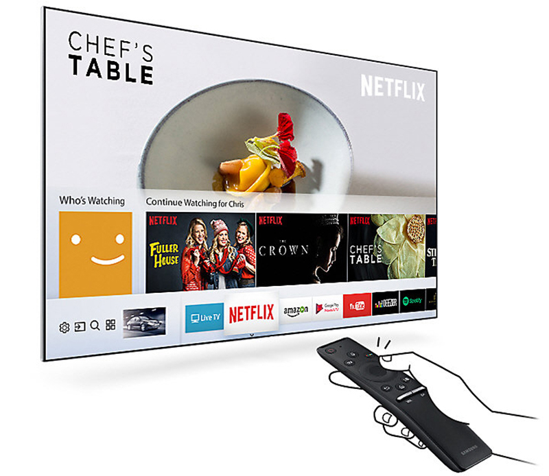 Giao diện Smart Hub đến từ hệ điều hành Tizen trên tivi cho phép người dùng truy cập các ứng dụng và nội dung dễ dàng, nhanh chóng. Giao diện này cũng được đánh giá cao vì đẹp mắt, mượt mà.