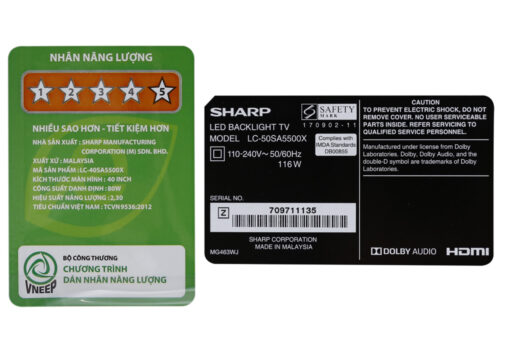 Smart Tivi Sharp 50 inch LC-50SA5500 gây ấn tượng với thiết kế hiện đại cùng tông màu đen mạnh mẽ.