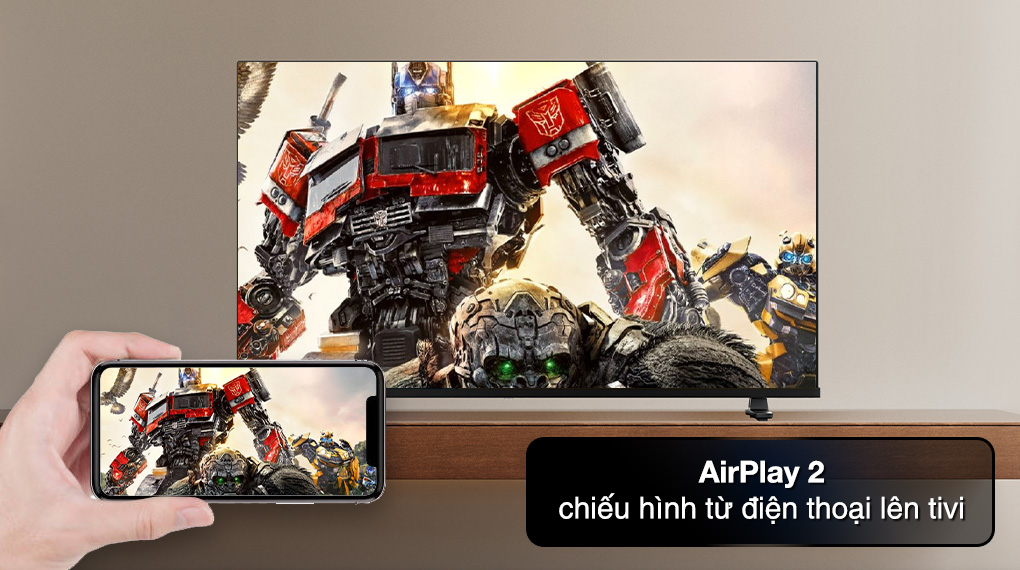 AirPlay 2, DLNA, Miracast và Content Sharing cho phép chiếu hình từ điện thoại lên tivi, thuận tiện chia sẻ ảnh, video hoặc nội dung học tập lên màn hình lớn để cả nhà cùng theo dõi rõ ràng hơn.