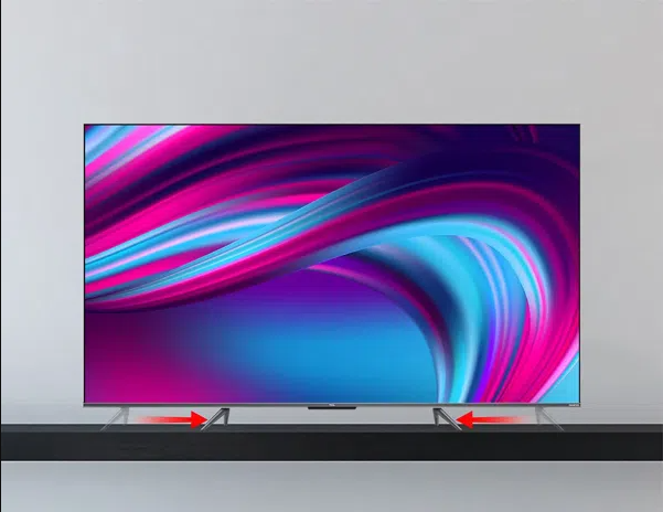 Sang trọng và tinh tế: Thiết kế không viền cao cấp của dòng TCL T7B đi kèm với chân đế kép có thể điều chỉnh.