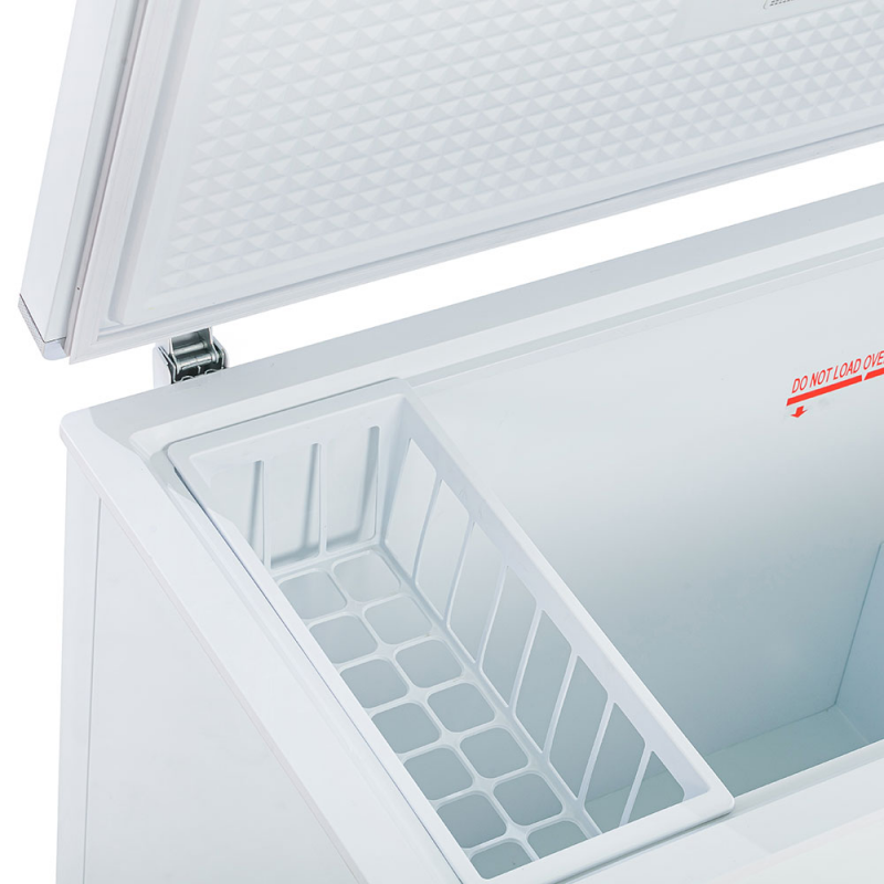 Lòng tủ có giỏ chứa thực phẩm bên trong tiện lợi cho việc phân loại thực phẩm bên trong tủ. Dưới đáy tủ có lỗ thoát nước giúp tránh trường hợp ngưng đọng nước, dễ dàng vệ sinh thiết bị. Foam cách nhiệt dày dặn, giữ lạnh cực tốt không làm thất thoát khí lạnh ra bên ngoài.